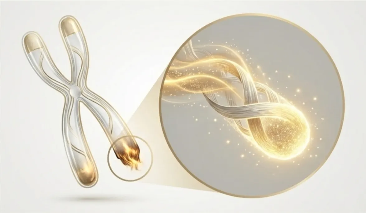 Telomeres are the protective caps at the ends of our chromosomes chromosomes that shorten each time a cell divides. This shortening is the primary biomarker of biological aging. The lengthening of telomeres is, by biological definition, true age reversal.