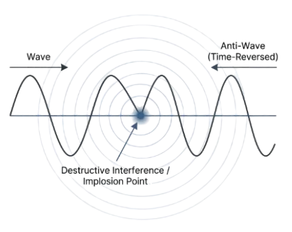 Scalar fields are generated through phase conjugation, a process where two identical, time-reversed waves are precisely converged. Unlike simple destructive interference, the energy from this collision is not nullified but is transduced into a new state.