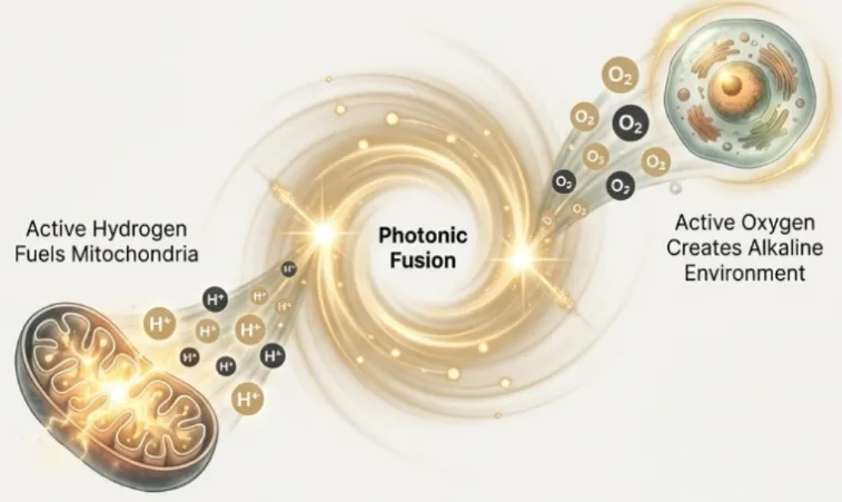 Active Hydrogen: The process releases active hydrogen atoms, the ultimate fuel for the cells. This feeds the mitochondria and aids in repairing the covalent hydrogen bonds in damaged DNA.