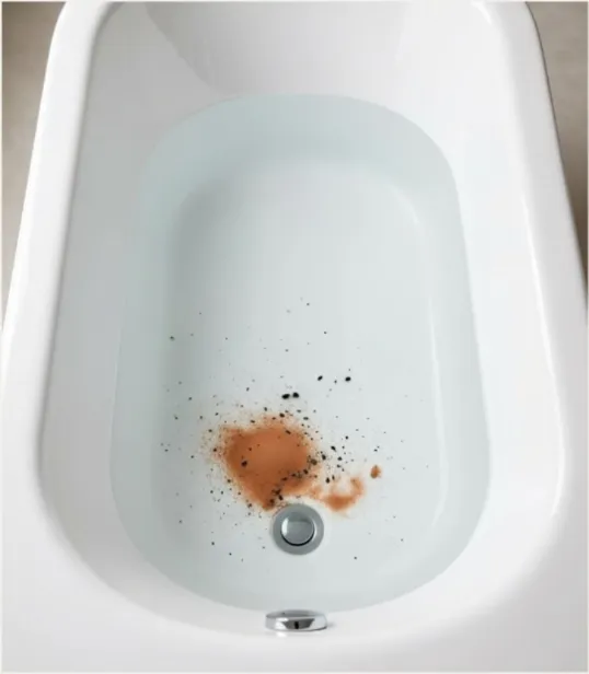 Black or Sandy Material*: A fine, dark, gritty substance accumulating at the bottom of the tub, believed to be heavy metals and other dense toxins.